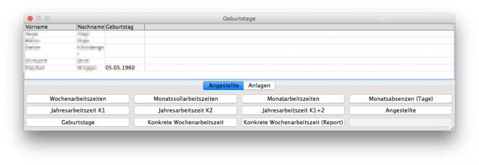 Durch Klick auf Geburtstage bekommt man eine Übersicht über die Angestellten mit ihren Geburtstagen.
