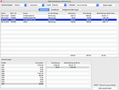 Hier können Sie sich die MWST-relevanten Daten zusammenstellen lassen.