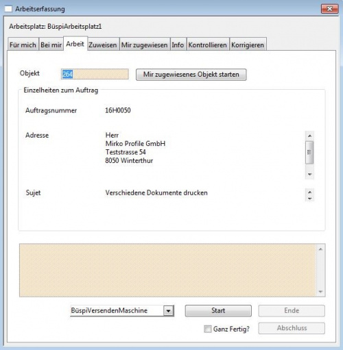 Herkömmliche Tasten Ende/Abschluss. (Genaueres hierzu in einem vorherigen Kapitel). Beim Abschluss wird das Objekt vom Arbeitnehmer/AN einem spezifischen Arbeitsschritt/HZ zur weiteren Arbeit zugeordnet. Diese Zuordnung liegt im Ermessen des Arbeitnehmers/AN.