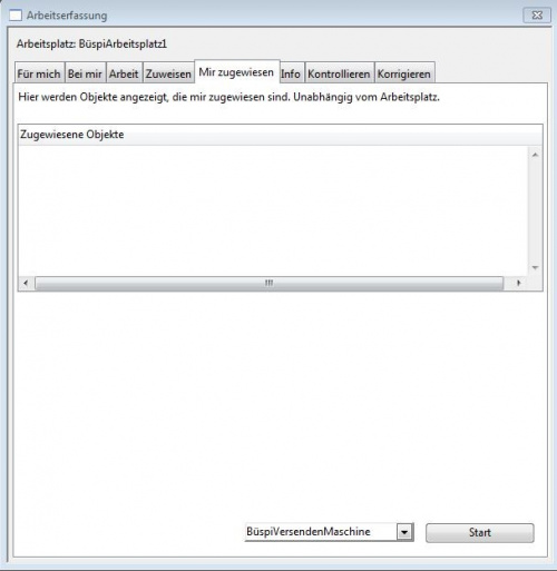 • Objekt/DO kann gestartet werden. In diesem Fall hat der Benutzer die Möglichkeit von allen möglichen Maschinen/MA an seinem Arbeitsplatz eine auszuwählen. (Genauere Details hierzu in einem vorherigen Kapitel)