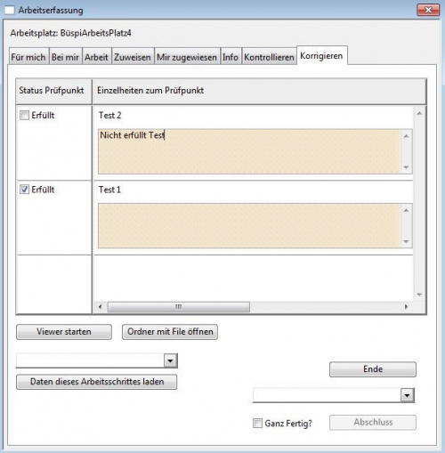 Dieser Teil des Fensters dient den Objekten/DO, welche als gegenwärtiger Arbeitsschritt/HZ das Korrigieren haben. Es gilt die im Arbeitsschritt/HZ Kontrollieren gemachten Entscheidungen zu überprüfen und evtl. zu ändern.