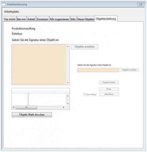 Dieser Teil des Fensters dient der Erstellung von neuen Objekte/DO. Hierbei ist der Herstellungskopf/HK sowie den Dateityp/DY gesetzt.