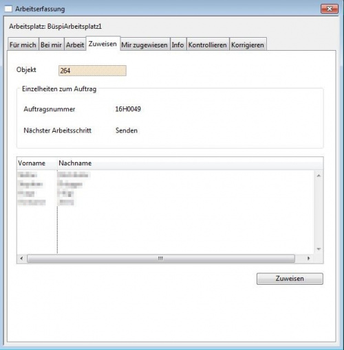 In diesem Fenster ist ein Gruppenleiter (o.ä Position) in der Lage, einem Mitarbeiter/AN ein gewisses Objekt/DO zuzuweisen. Es stehen nur Mitarbeiter/AN zur Auswahl, welche auch die nötigen Zertifikate/ZF besitzen.