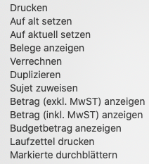 - Belege anzeigen: Zeigt für die markierten Zeilen die Belege in der entsprechenden Spalte an.