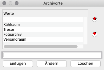 Dieses Fenster erreichen Sie unter «Einstellungen -> Tabellen -> Aufträge -> Archivorte».