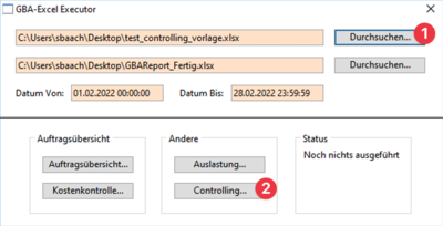 Die Auswertung kann aktuell nur im Fenster "GBA Auswertungen" erstellt werden. Dazu muss man dem Fenster lediglich den Pfad zur Vorlage zeigen.