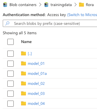 Es empfiehlt sich je Projekt / Kunde einen eigenen Container anzulegen. In dem jeweiligen Container werden dann nach Bedarf weitere Unterordner für jedes zu Trainierende Model angelegt.