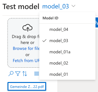 Test - Hier werden die Modelle getestet, indem Dokumente hochgeladen und durch ein Model laufen gelassen werden.