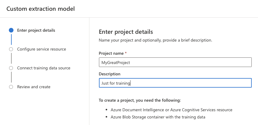 Der Dienst besteht zumindest aus einem Document intelligence Objekt und einem zugehörigen Speicherkonto.