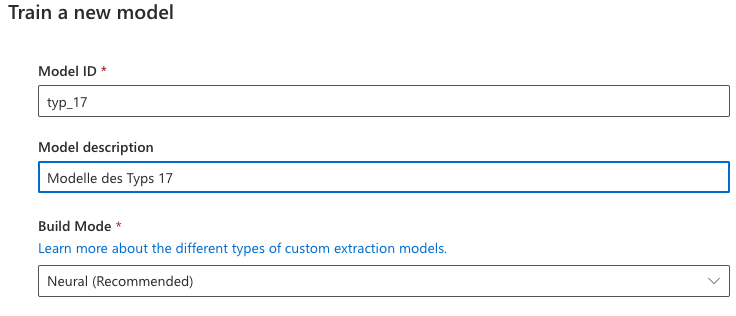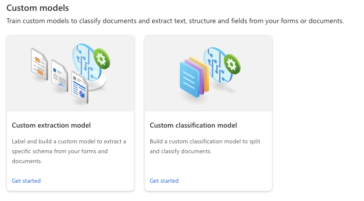 Um eigene Modelle zu erstellen und zu trainieren, verwenden wir die "Custom extraction", bzw. die "custom classification" falls die Dokumente erst separiert werden müssen.