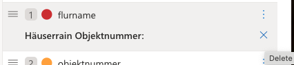 Auf der rechten UI Seite werden die Felder verwaltet. Nebst dem erstellen von neuen Felder über "Add a field", können diese dort über das Kontextmenu (Aufruf über die 3 Punkte ganz rechts beim Feld) gelöscht, umbenannt oder der Datentyp des Feldes geändert werden. Die Vergabe der Farbe geschieht automatisch und kann nicht geändert werden. Neue Felder können auch fortlaufend bei der Auswahl von relevanten Textstellen in der Dokumentedarstellung erstellt werden.