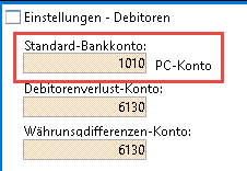 - im Debitorenfenster, beim Abbuchen der Debitoren, wenn Sie im Feld Bankkonto die Help-Taste drücken.