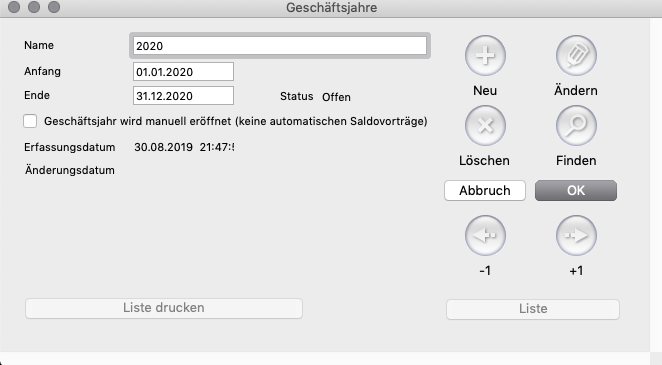 Abbildung: Fenster zum Erstellen eines neuen Buchungsjahres