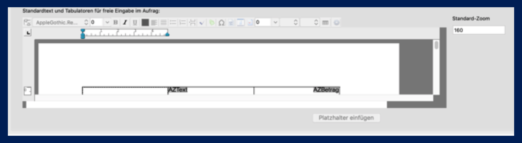 Screenshot aus dem Einstellungsfenster (Register Auftrag)