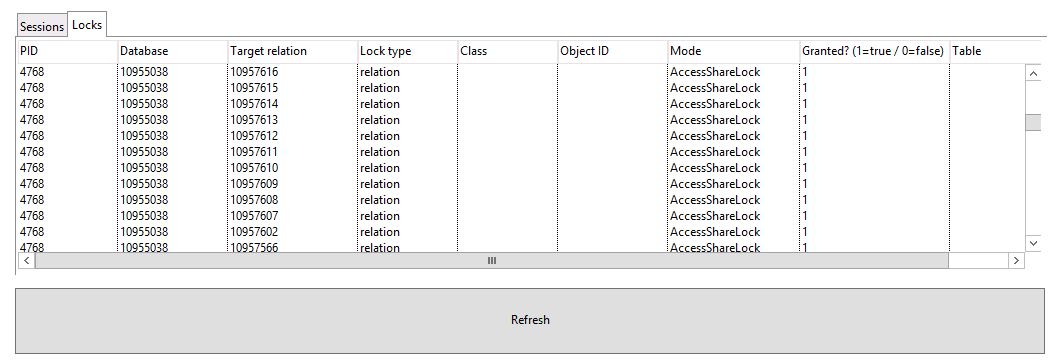 - Lock type: Die Sperrung relation steht für Sperrung von Tabellen und Indexe.