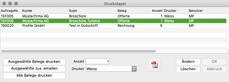 Ausdruckbare Belege wie Rechnungen, Lieferscheine, Lohnausweise usw. können anstatt der direkten Ausgabe an einem Druckgerät vorerst im Druckstapel vorgehalten werden.