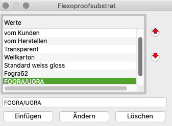 Hier können Sie die bei Ihnen verwendeten Proof-Trägermaterialen erfassen.