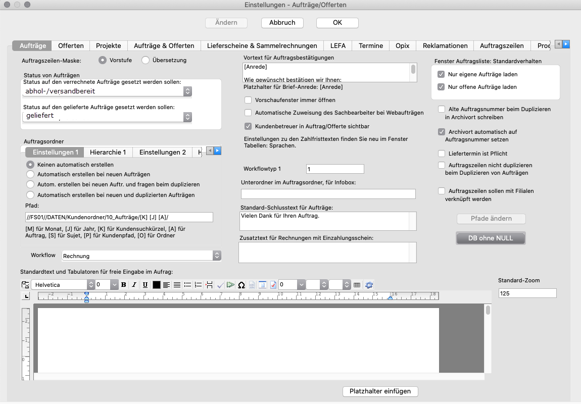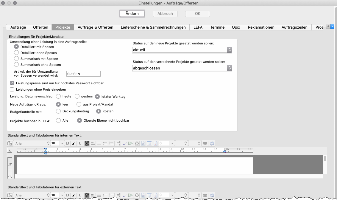 Dieses Fenster erreichen Sie unter «Einstellungen -> Aufträge/Offerten/Projekte».