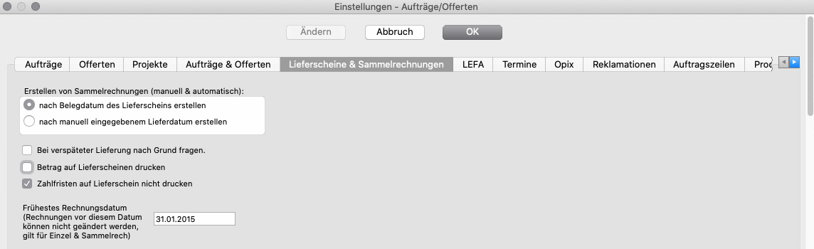 Optionsfeld «Lieferscheindatum auf Sammelrechnung»