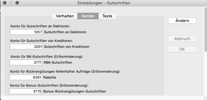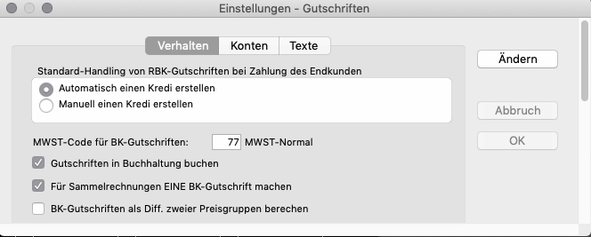 Einstellungen Gutschriften