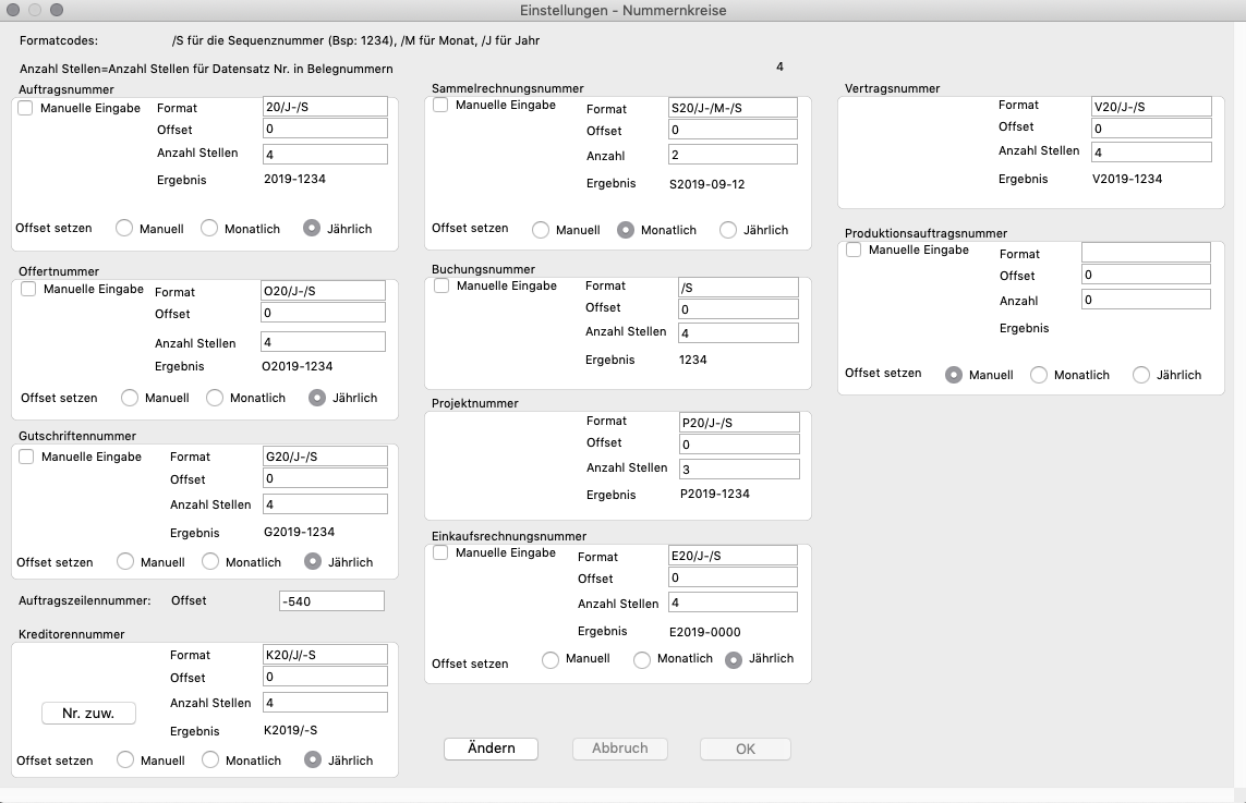 - Möchten Sie beispielsweise Auftragsnummern monatlich nullen, muss zur Unterscheidung der Monatsplatzhalter in der Ordnungszahl verwendet werden (z. B. A20-01-001, A20-02-001).