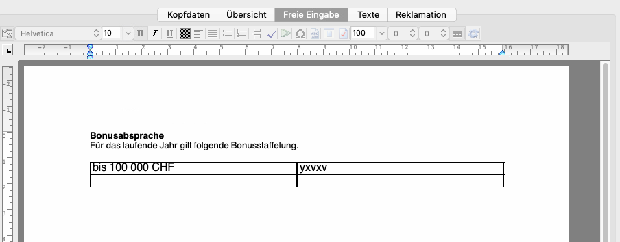 Die freie Texteingabe begegnet Ihnen in Helper überall dort, wo in den Belegen benutzerdefinierte Texteingabe und Flexibilität in der Gestaltung sinnvoll sind.