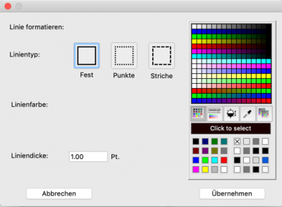 In diesem Fenster definieren Sie den Linientyp, die Linienfarbe sowie die dicke der Linie.
