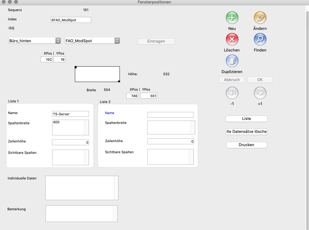 Dieses Fenster erreichen Sie unter «Einstellungen -> Tabellen -> Installation -> Fensterpositionen».