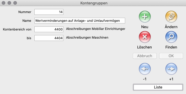 Dieses Fenster finden Sie unter Buchhaltung -> Kontengruppen.