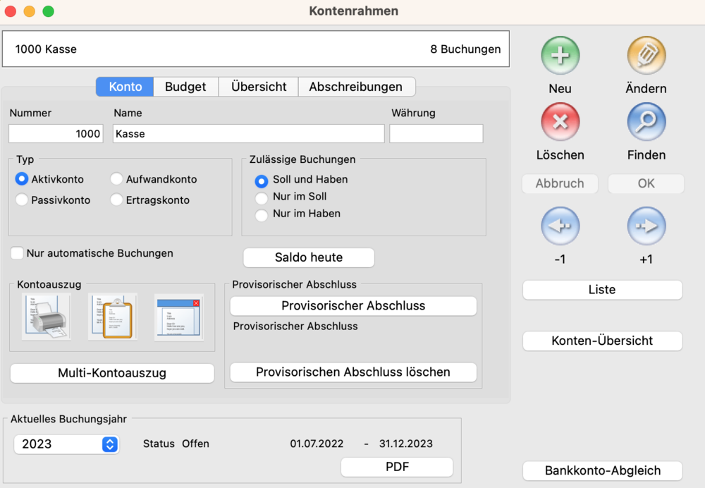 Darüber hinaus können Sie hier auch Kontoauszüge, Bilanzen und Erfolgsrechnungen erstellen. Einzelne Buchungen hingegen können Sie hier nicht bearbeiten.