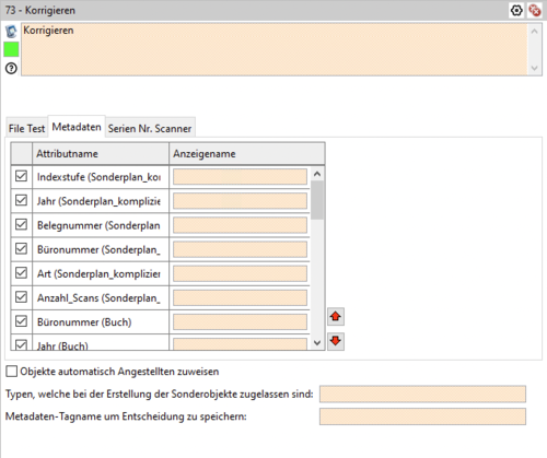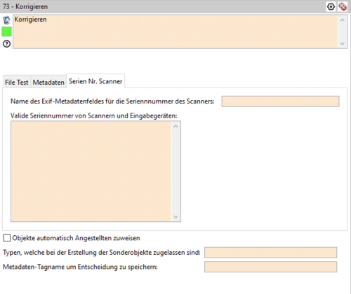 - Serien Nr. Scanner: Schreibt die Seriennummer eines Scanners in die Bilddatei. Ermöglicht die zwingende Angabe der Seriennummer eines verwendeten Eingabegerätes / Scanners beim starten des Arbeitsfensters.