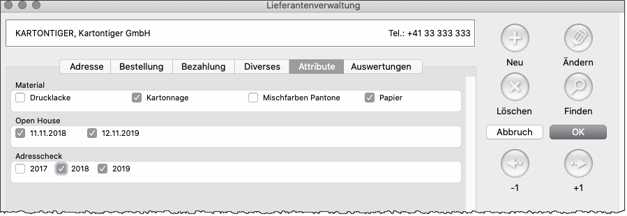 - Listet alle Lieferanten in einem Fenster auf, um schnell in einen anderen Lieferanten-Datensatz wechseln zu können.