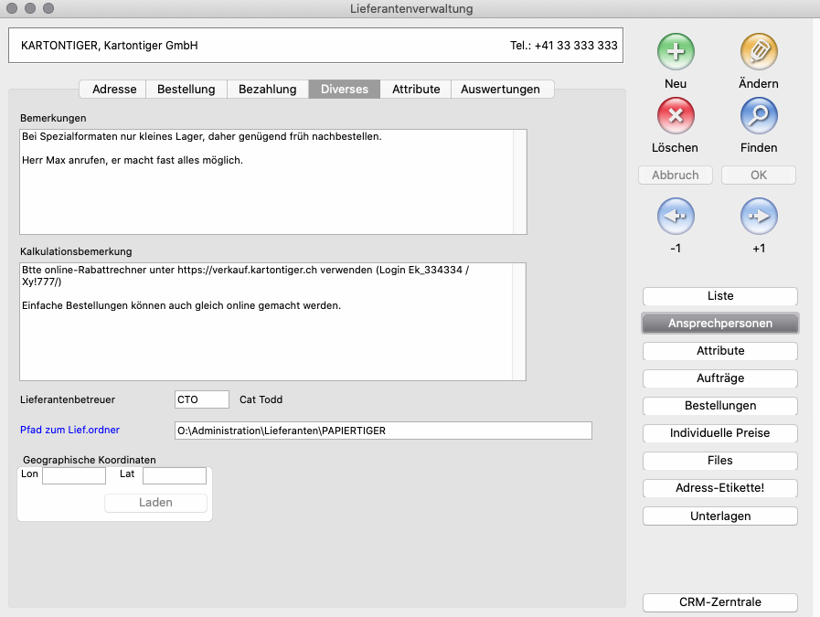 - Hier können Sie Informationen zum Lieferanten erfassen.