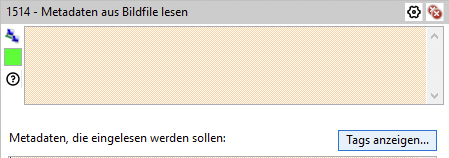 Im Konfigurationsfenster des Arbeitsschrittes kann über die Taste Tags anzeigen... ein Bild ausgewählt werden, um die darin vorhandenen Metadaten an zu zeigen.