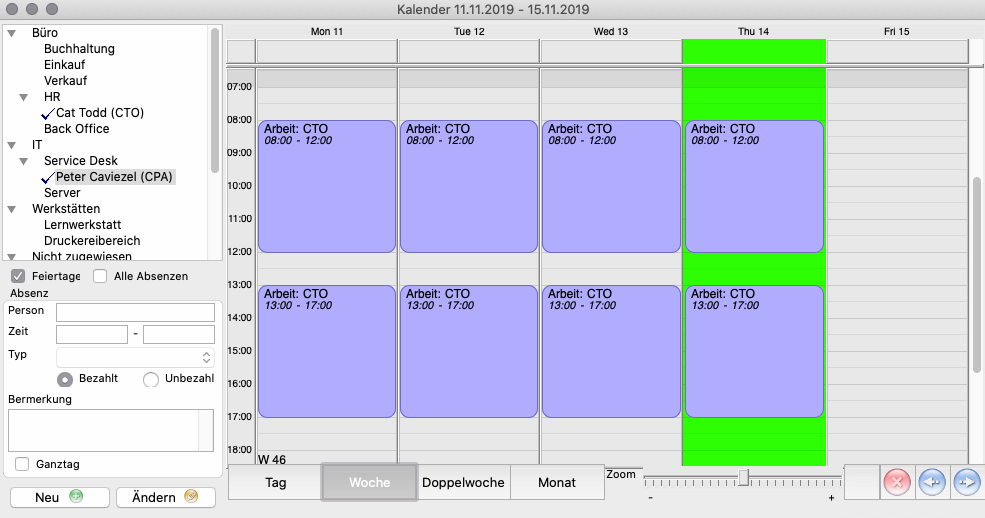 Hier können Sie die Verfügbarkeit Ihres Personals planen und überwachen.