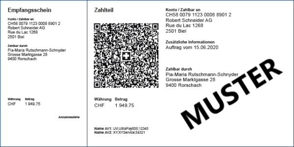 Abbildung: Muster mit Empfangsschein und Zahlteil einer Schweizer QR-Rechnung