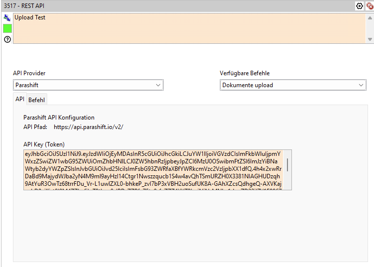 Der Arbeitsschritt stellt eine Verbindung zu einer WEB-API her, und führt von der API zur verfügung gestellte Befehle aus.