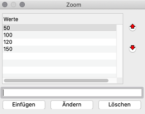 Hier können Sie Zoomstufen für das «Freie Texteingabe»-Fenster definieren.