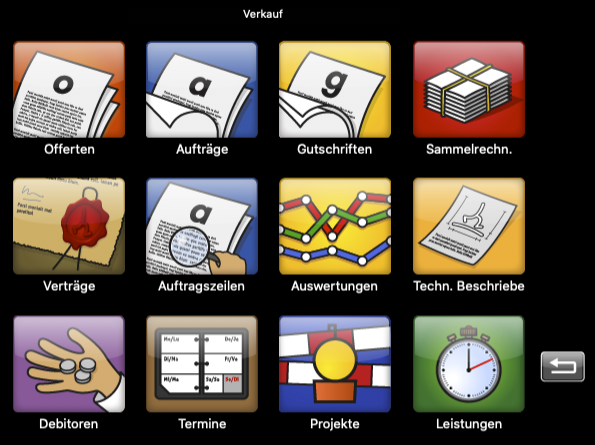 Hinter dieser Schaltfläche finden Sie einen Einstiegspunkt für Module aus dem Bereich «Verkauf».