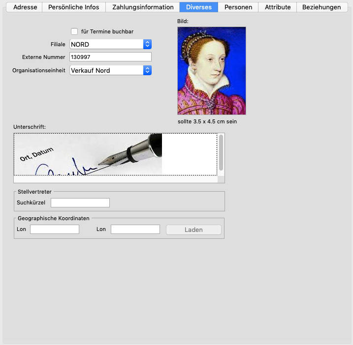 - Hier können Sie ein Unterschriften-Scan des Angestellten über die Zwischenablage einfügen. Diese Unterschrift kann in Offerten oder Auftragsbestätigungen verwendet werden.