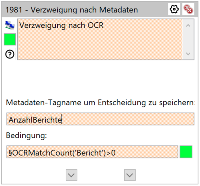 Es ist zudem Möglich die Funktion §OCRMatchCount('<Regex>',pEbene,pSpezialhändling) aufzurufen. Diese Methode gibt die Anzahl Vorkommnisse in allen Files des Objektes zurück. Der Parameter der Funktion ist ein Regex oder auch ein einfacher Text. Es können natürlich Attribute in Eckigen Klammern verwendet werden oder Omnis Befehle um eine Formel zu kreieren.