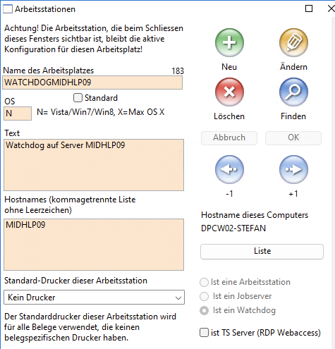 Als "Name der Arbeitsstation" kann ein beliebieger Name eingegeben werden. Über diesen Namen wird der Watchdog jedoch identifiziert. Es empfiehlt sich deshalb einen Hostnamenteil im Namen zu verwenden.